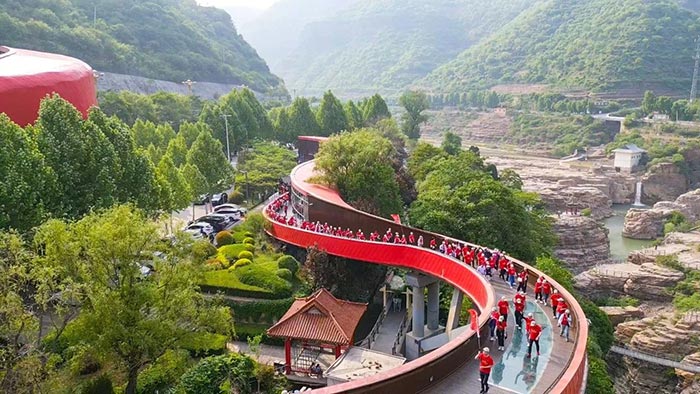 4月29日清晨,迎著山間的朝露與鳥鳴,全體學(xué)員前往太行山大峽谷,開展了一場別開生面的觀摩教學(xué)。行走在巍巍太行山間,在桃花谷、太行天路中,感受“美太行”的美麗鄉(xiāng)村建設(shè)的新時代畫卷,探訪山區(qū)人民自力更生、艱苦創(chuàng)業(yè)的致富精神。