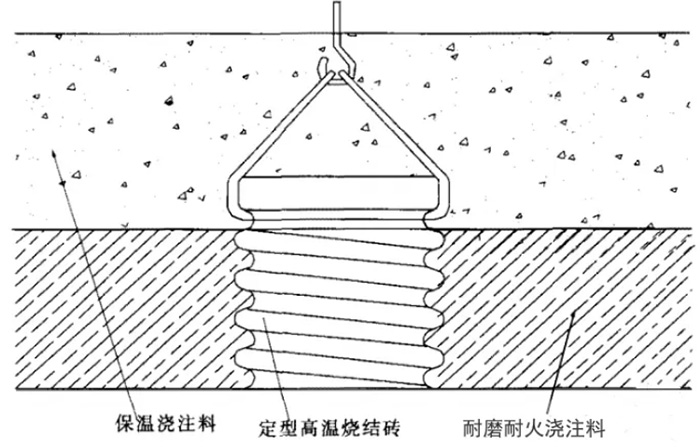(3)采用固定抓釘和高溫?zé)Y(jié)磚的澆注料結(jié)構(gòu)形式