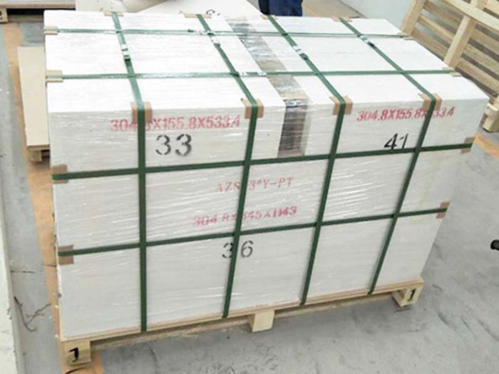 國內玻璃窯爐外普遍采用電熔鋯剛玉磚和α-β剛玉磚、β剛玉磚砌筑。電熔鋯剛玉磚的高溫和抗玻璃液的性能優(yōu)異,這是它獲得了燒結耐火材料不可能獲得的抗侵蝕性非常好的斜鋯英石與α-Al2O3的共晶體,所以它作為玻璃窯爐熔化部池壁磚是非常合適的。