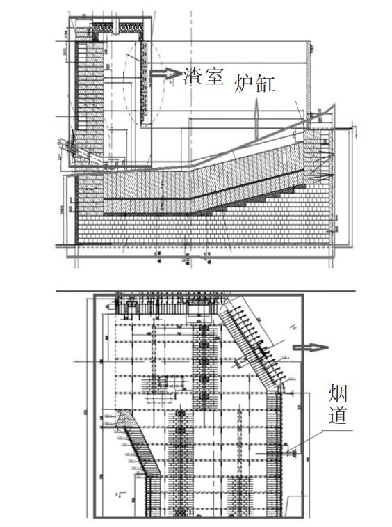 圖1 爐缸、渣室和煙道區(qū)域