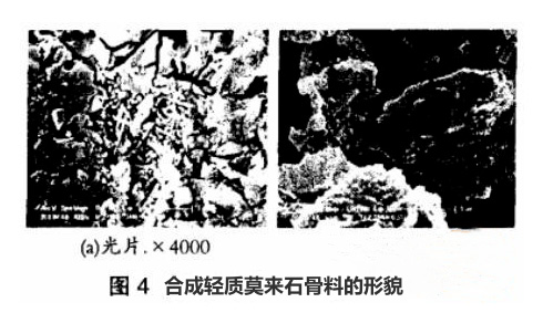 圖4為1350℃×6h燒后的合成莫來石輕質(zhì)骨料的斷口和光片,在顯微電鏡下觀察合成料的組織結(jié)構(gòu)和莫來石的生成與析晶狀況。坯體料經(jīng)燒成后,中的Al2O3、SiO2沒有完全反應(yīng)。未反應(yīng)的工業(yè)氧化鋁轉(zhuǎn)化為高溫相α-Al2O3,而未反應(yīng)的硅石會(huì)在降溫過程中發(fā)生相變,使得硅石顆粒呈現(xiàn)菜花狀開裂的現(xiàn)象,在玻璃相存在的地方,有針柱狀的莫來石生成,如圖4(a)所示。由于多孔材料的固相傳質(zhì)受限,所發(fā)生的固相反應(yīng)多為“原位”型反應(yīng),即在Al2O3和SiO2接觸的地方原位生成莫來石新相,而在兩者不接觸的顆粒內(nèi)部區(qū)域,則各自保持原有狀態(tài),如圖4(b)所示??梢酝葡?,以本實(shí)驗(yàn)工藝合成輕質(zhì)多孔莫來石骨料的莫來石轉(zhuǎn)化率有一上限值,這個(gè)上限轉(zhuǎn)化量的大小與反應(yīng)物的特性以及分散均勻程度息息相關(guān)。本工作中Al2O3源和SiO2源的細(xì)度約為10-20μm,顯微均勻程度仍不理想,限制了莫來石轉(zhuǎn)化率的提高。如何提高坯料中Al2O3和SiO2成分間的分散均勻程度也是下一步工作中值得深入研究的。